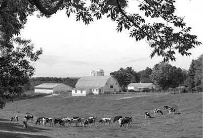 Western Southwick, by contrast, is a varied terrain of hills, swamps, streams, forests, and ex-posed bedrock. It is excellent grass country. The ground drains and warms slowly after winter, but it retains moisture through most summers, supporting strong pasture growth. Brooks and small ponds provide water for livestock, and scattered small fields can be plowed and culti-vated on gentler slopes.