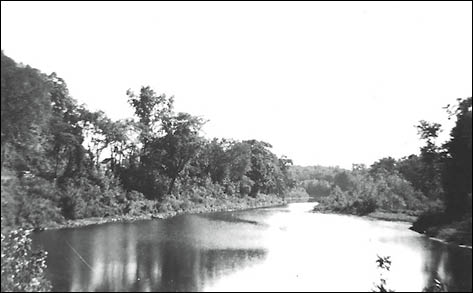 Left: Westfield River Bend partly filled in on left to widen Route 20 in 1962, Right: West Springfield Route 20 curve, center background, widened 1962