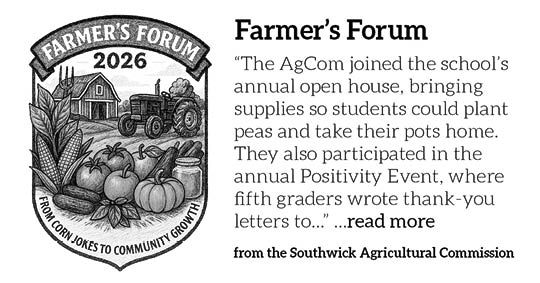 In the next Southwoods, I will begin the story of Southwick dairy farming. For now, those who live locally are invited to enjoy our farmscapes with a new “farming nerd” appreciation for how they came to be.