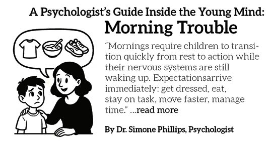 Uncertainty adds another layer. Adults usu-ally have a clear mental roadmap of the morn-ing, but children often don’t. When they aren’t sure what comes next, how long something will last, or when it will be over, anxiety increases and the nervous system stays on alert. For some children—particularly those who are anxious, highly sensitive, neurodivergent, or simply young—language access can also be limited in the morning. What looks like refusal may actu-ally be a child who doesn’t yet have the words to express how overwhelmed their body feels. These struggles are not signs that something is wrong with a child; they are signals that the nervous system needs more orientation, pre-dictability, and support before expectations be-gin to stack up.
