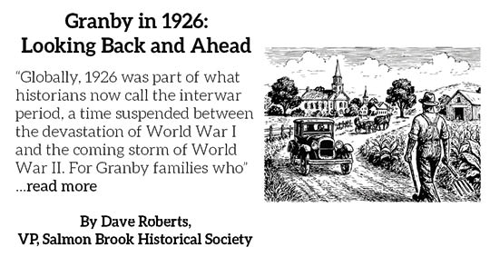 As Granby enters 2026, it is fascinating to look back a full century and imagine what life was like for our residents in 1926—a year shaped by optimism, turbulence, and rapid change. People living in Granby then could not envision the ex-act form of today’s world, yet they felt the same mixture of hope and uncertainty that we do now. Their lives were influenced not only by local concerns but also by global forces and national developments that reached even our quiet New England hills. My cousin Shirley Moore turns 102 in 2026, and from her and other relatives, I have heard fascinating stories about life in the 1920s, 1930s, and beyond.