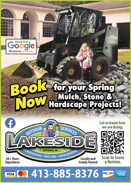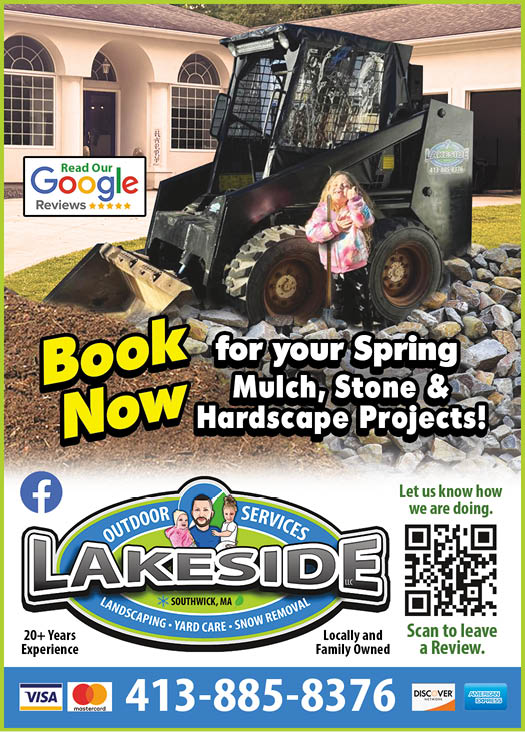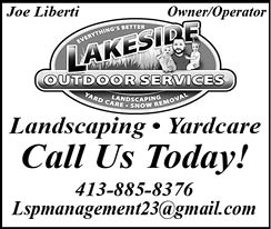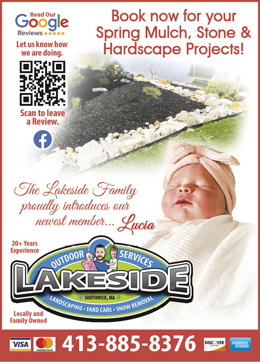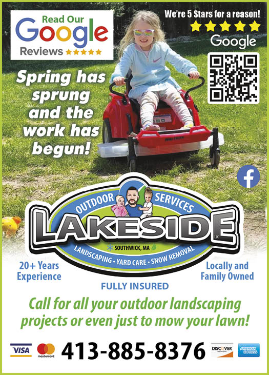 Lakeside Property management - For all your landscaping needs. Mowing, new lawn installs, sod, mulch/stone installation, bush trimming, retaining walls, snow plowing/removal, etc. Serving Southwick, Suffield, Granby, Agawam, Westfield, Simsbury. Residential and commercial. Call Joe 413-885-8376. Give us a call and let us get that property looking the way you want it! Now accepting major credit cards.
