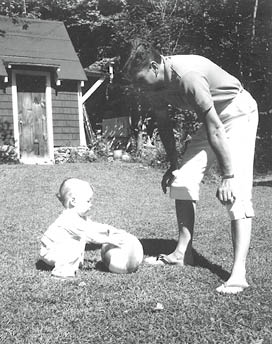 April 28, Saturday. Up 4:45 a.m. Fisher-men were passing. To laundry 6:15 a.m. and to Westfield for readymix Saccrete to cement re-taining wall extension. Worked in red briefs. E and baby went with me to Westfield, A & P, Charkoudians and Russell Grocery. I set out phlox, carnations and lilies of the valley. Had puffed wheat and lots of milk and ice cream for supper.