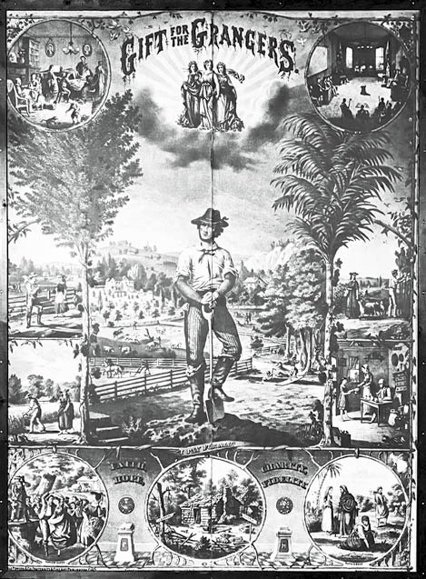 Inside the hall hangs a unique and charming artifact: a poster entitled “Gift for the Grang-ers.” Many visitors remark on its vivid imagery and period-style artwork depicting agricultural life and the ideals of the Grange movement. But what makes the piece truly special is its prov-enance.