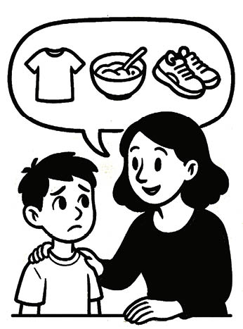 A preview might sound like: “First we’ll get dressed, then we’ll have breakfast, then we’ll put on shoes and head out.” The sequence is short, the language is clear, and the tone is calm. Using concrete anchors—“after breakfast,” “before we leave,” “when the timer goes off”—helps chil-dren feel less lost in the process. Just as impor-tant as the words is the presence behind them. A slower pace, steady tone, and sense of avail-ability communicate safety before any plan does. Acknowledging emotions—“Mornings can feel hard sometimes”—helps children feel supported rather than rushed.