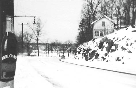 Left: Westfield River Bend partly filled in on left to widen Route 20 in 1962, Right: West Springfield Route 20 curve, center background, widened 1962