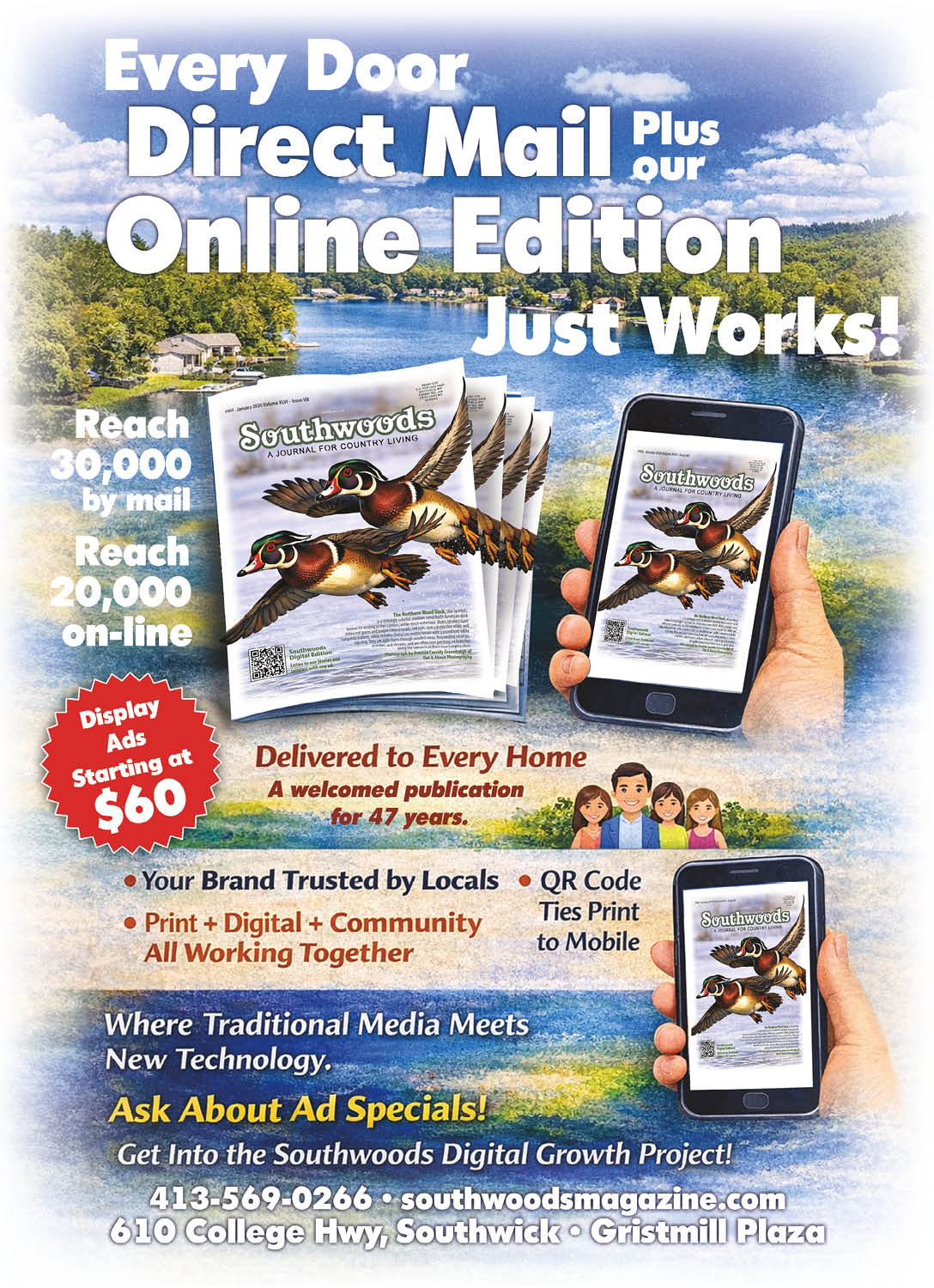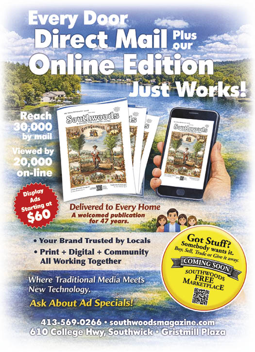 To include your event, please send information by the 1st of the month. We will print as many listings as space allows. Our usual publication date is around the 10th of the month. Email to: magazine@southwoods.info.