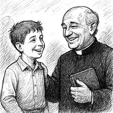 One Sunday he forgot to slip out early. The service ended, and suddenly he was surrounded by people. Then he felt a hand on his shoulder. He turned and looked up into the eyes of the preacher.