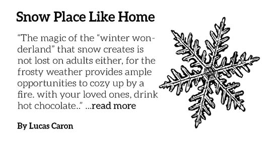 Ultimately, then, the most critical step that must be taken to mitigate the harmful effects of the ice-albedo feedback is the same step that has been echoed by numerous scientists in response to the growing dangers of climate change: re-duction of our production of greenhouse gases on a global scale is paramount. The precious snowfall that defines the winter months here in New England, the life all around Earth threat-ened by dangerously rising temperatures, de-pends on the collective efforts of citizens, world governments, and corporations to reduce harm-ful emissions and work toward a more sustain-able tomorrow. There’s snow place like home, after all—it’s time we work together to protect it, frosty weather and all.